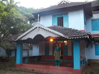 We are staying in a beautiful old Kerala-style home, with large wooden doors and overhanging roof to keep the house cool. We have a large well in the back, attached to the kitchen, where we directly get all our water. In fact, there is a window in the kitchen which opens to the well, and a bucket that can be pulled up (however, water can also be obtained thru the pipes). The house has electricity, but no fridge, no hot water (tho if we really feel like it, we can heat some up on the stove for a hot bucket bath). Otherwise, its really quite warm here in the afternoons, and the water from the well feels refreshing. There's an outside little room for taking a cool shower or bucket bath.